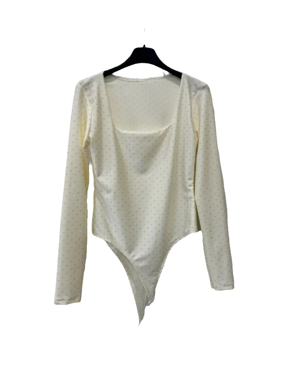 Body con brillantini a manica lunga e collo squadrato