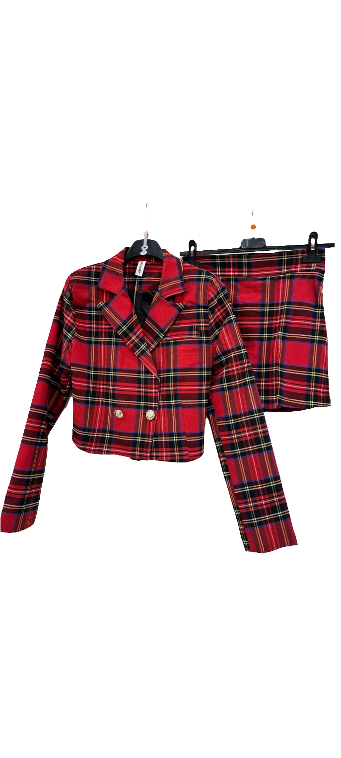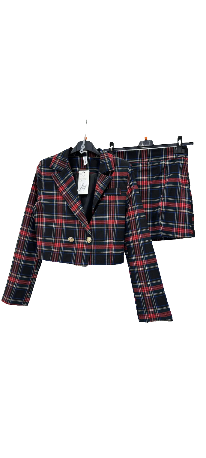 Completo scozzese pantagonna più blazer corto
