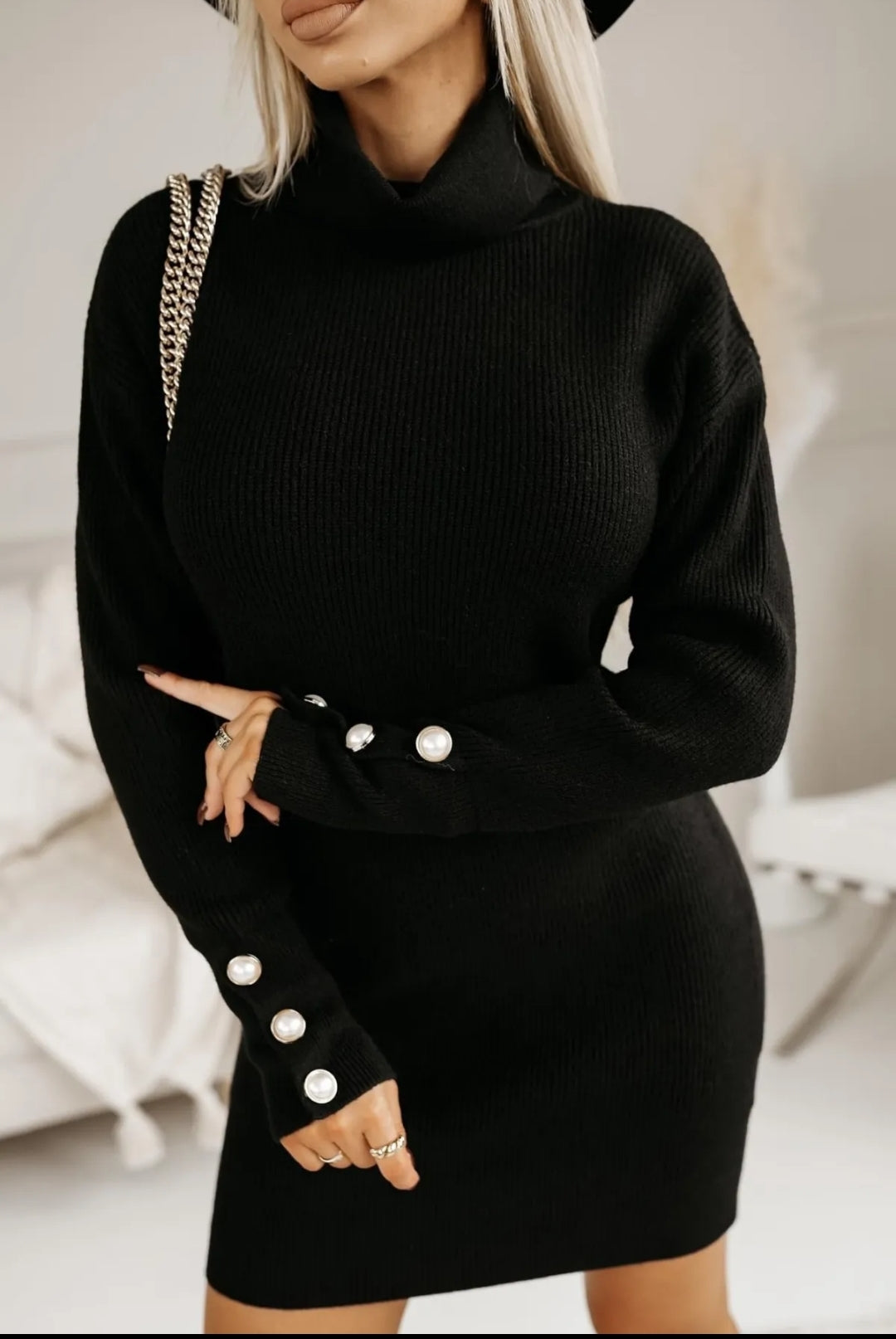 Maglia vestito con bottone in decoro sul polso taglia unica